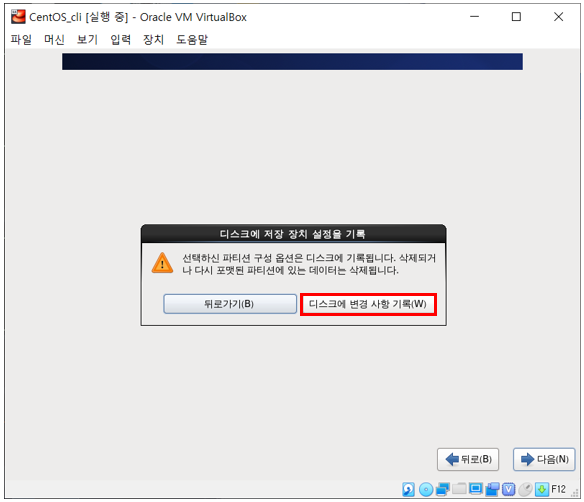디스크에 변경 사항 기록을 클릭하여 설치해 줍시다