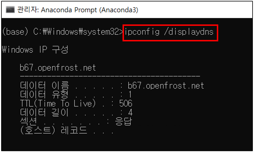 1. ipconfig /displaydns: 로컬 DNS 캐시 정보 조회