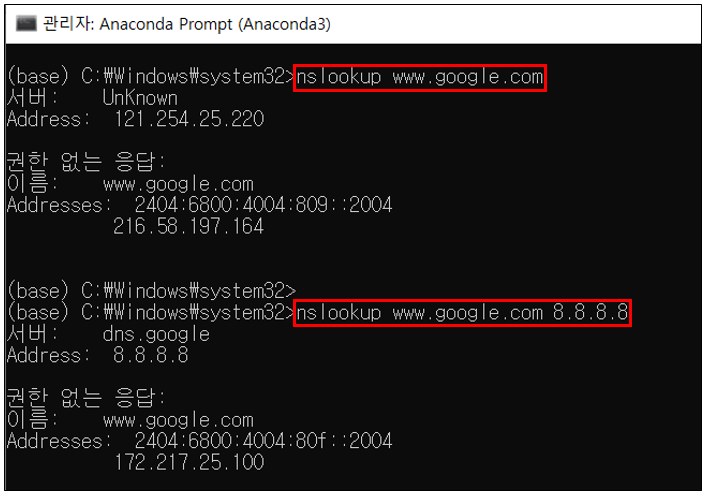 nslookup 명령어