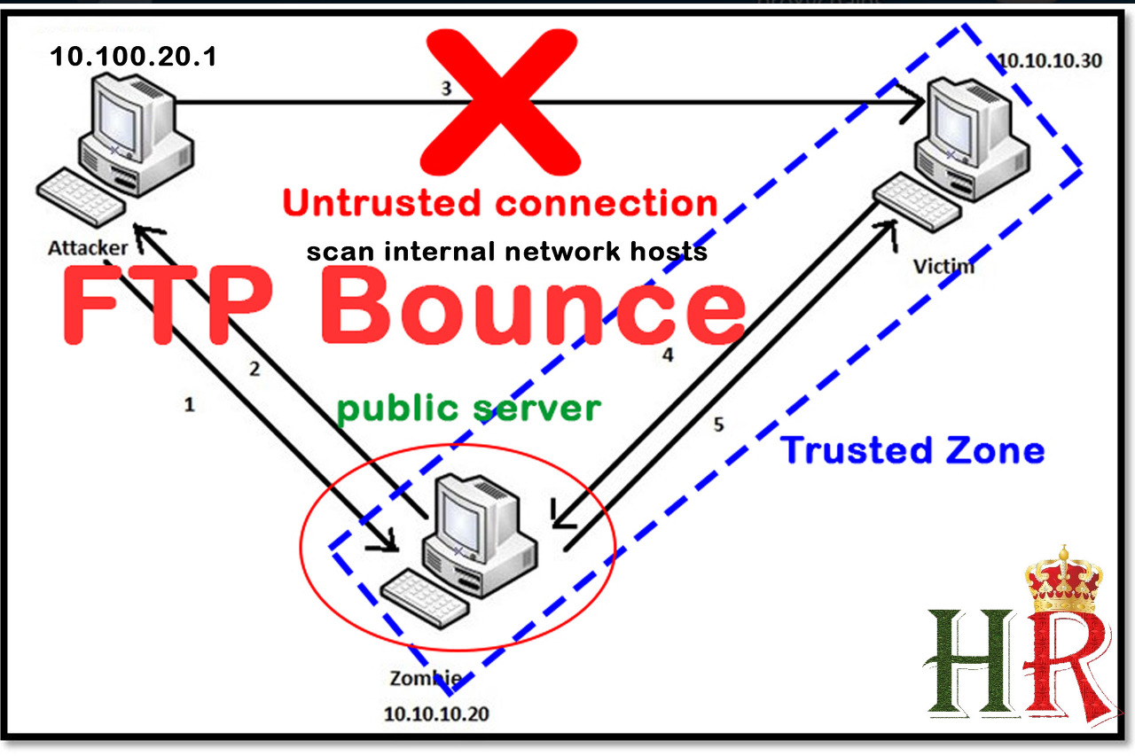 - 주로 익명FTP 서버를 이용, PORT 명령을 조작하여 공격대상 네트워크를 스캔하고 FTP 서버로 하여금 공격자가 원하는 곳으로 데이터를 전송하게 한다.