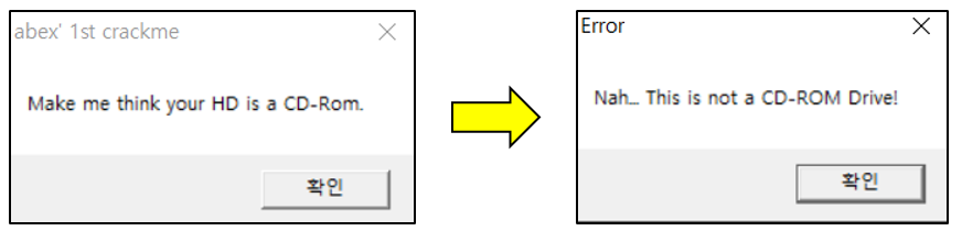 프로그램을 실행하면, CD-ROM이 아니라 실행할 수 없다는 에러 경고창이 뜬다.