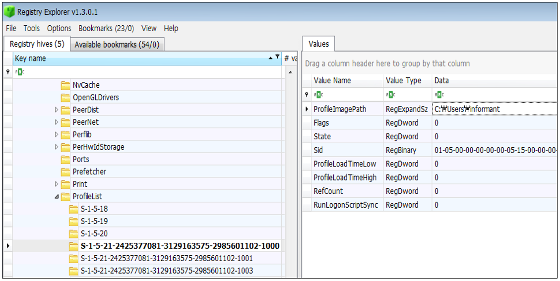 다음의 두 레지스트리에서 사용자 계정 정보를 확인할 수 있다.