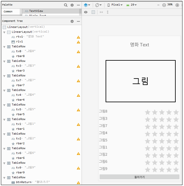 1. 화면설계를 테이블 레이아웃으로 설계한다.