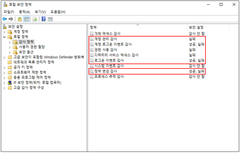 감사 설정이 너무 높으면 보안 로그에 불필요한 항목이 많이 기록되므로 매우 중요한 항목과 혼동할 수 있으며 시스템 성능에도 심각한 영향을 줄 수 있기 때문에 법적 요구 사항과 조직의 정책에 따라 필요한 로그를 남기도록 설정해야한다.