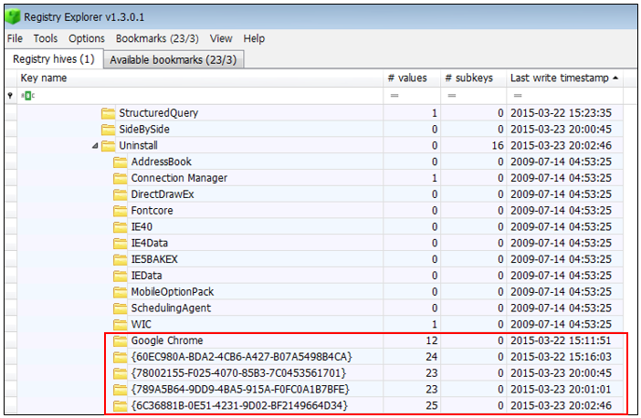 위의 그림과 같이 레지스트리 경로를 찾아가 본 결과 강조된 내용과 같이 약 5개의 프로그램이 설치 된 것을 알 수 있었다. 자세한 내용은 아래의 Report를 참고한다.