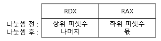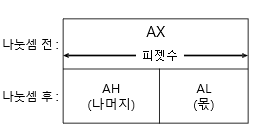 | 명령어 | 제수 | 피제수 | 몫 | 나머지 |
