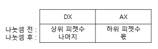 명령어 | 제수 | 피제수 | 몫 | 나머지 |