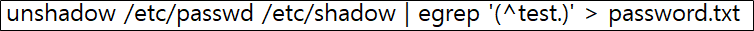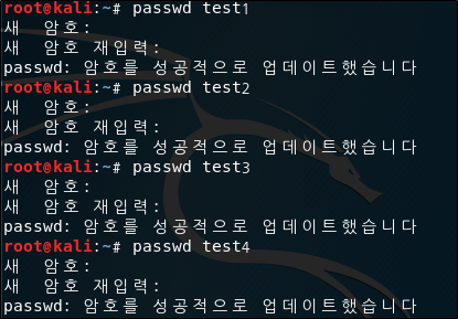 password.txt 파일에 test(1~4)의 passwd, shadow 정보를 저장합니다.