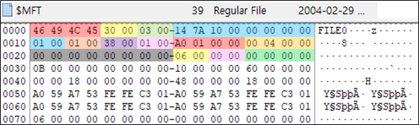 - Sequence Value가 0x20이고 MFT Entry Address가 0x400 일 때 File Reference Address는 0x0020000000000400이 된다.