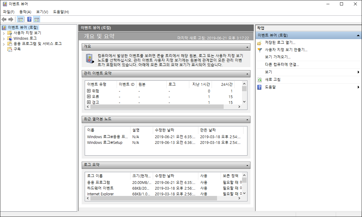 #윈도우 시스템에서 이벤트 로그 실행방법
