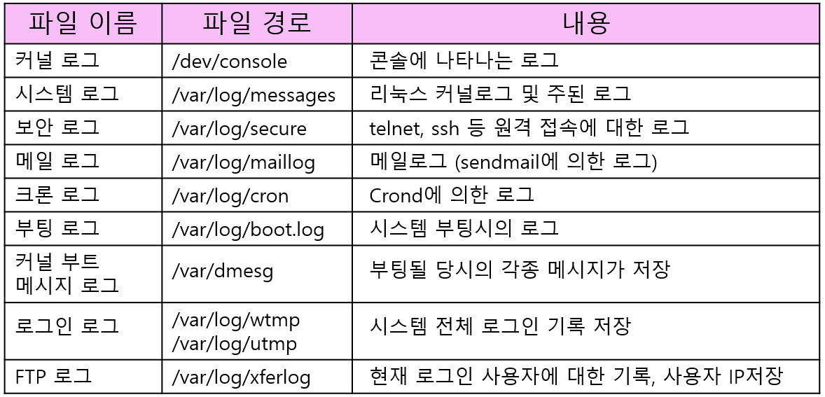 #유닉스/리눅스 시스템의 로그 파일 이름과 저장되는 내용
