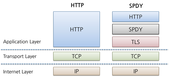 - 이러한 HTTP 1.1의 문제점 해결을 위해 노력한 곳은 IETF HTTP Working Group(HTTP WG)이 아닌 구글이였다. 그들은 자신들의 'Make the Web Faster' 노력로 2009년에 새로운 프로토콜인 SPDY를 발표하였다.