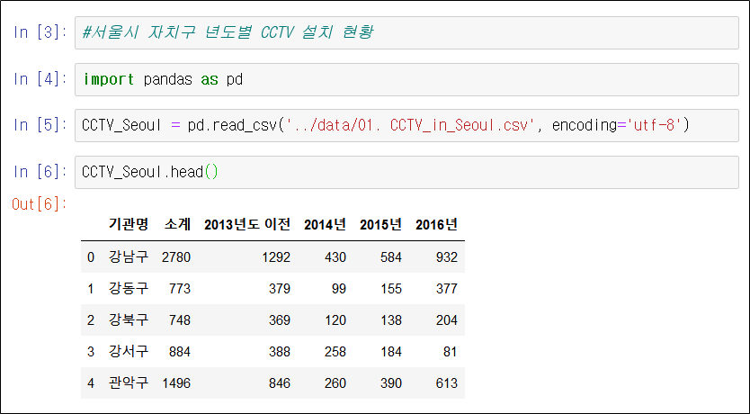 [예제 파일] 서울시 자치구 연도별 CCTV 설치 현황