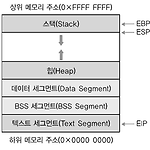 ※메모리의 기본 구조 ※스택 -후입선출 (LIFO) 방식에 의해 정보를 관리-Top이라고 불리는 스택의 끝부분에서 데이터의 삽입과 삭제가 발생-가장 나중에 삽입된 정보가 가장 먼저 읽힘 ※힙(Heap) -프로그램의 실행 중 필요한 기억장소를 할당하기 위해 운영체제에 예약되어 있는 기억장소 영역-데이터를 저장하기 위해 기억 장소를 요청하면 운영체제는 힙에 존재하는 기억장소를 프로그램에 할당-기억 장치가 더 이상 필요 없으면 할당 받앗던 기억장소를 운영체제에 반납, 운영체제는 반납된 기억장소를 다시 힙에 돌려준다.-힙에 대한 기억 장소는 포인터를 통해 동적으로 할당되거나 반환-연결 리스트, 트리, 그래프처럼 동적인 특성이 있는 데이터 구조에서 널리 사용 ※데이터 세그먼트 -초기화된 외부 변수나 static ..