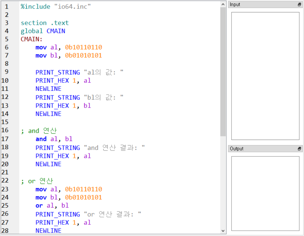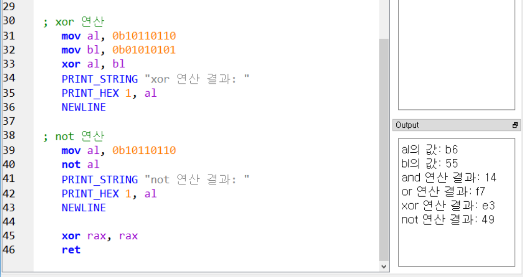 - 오른쪽으로 1비트씩 이동 ex) shr ax, 4